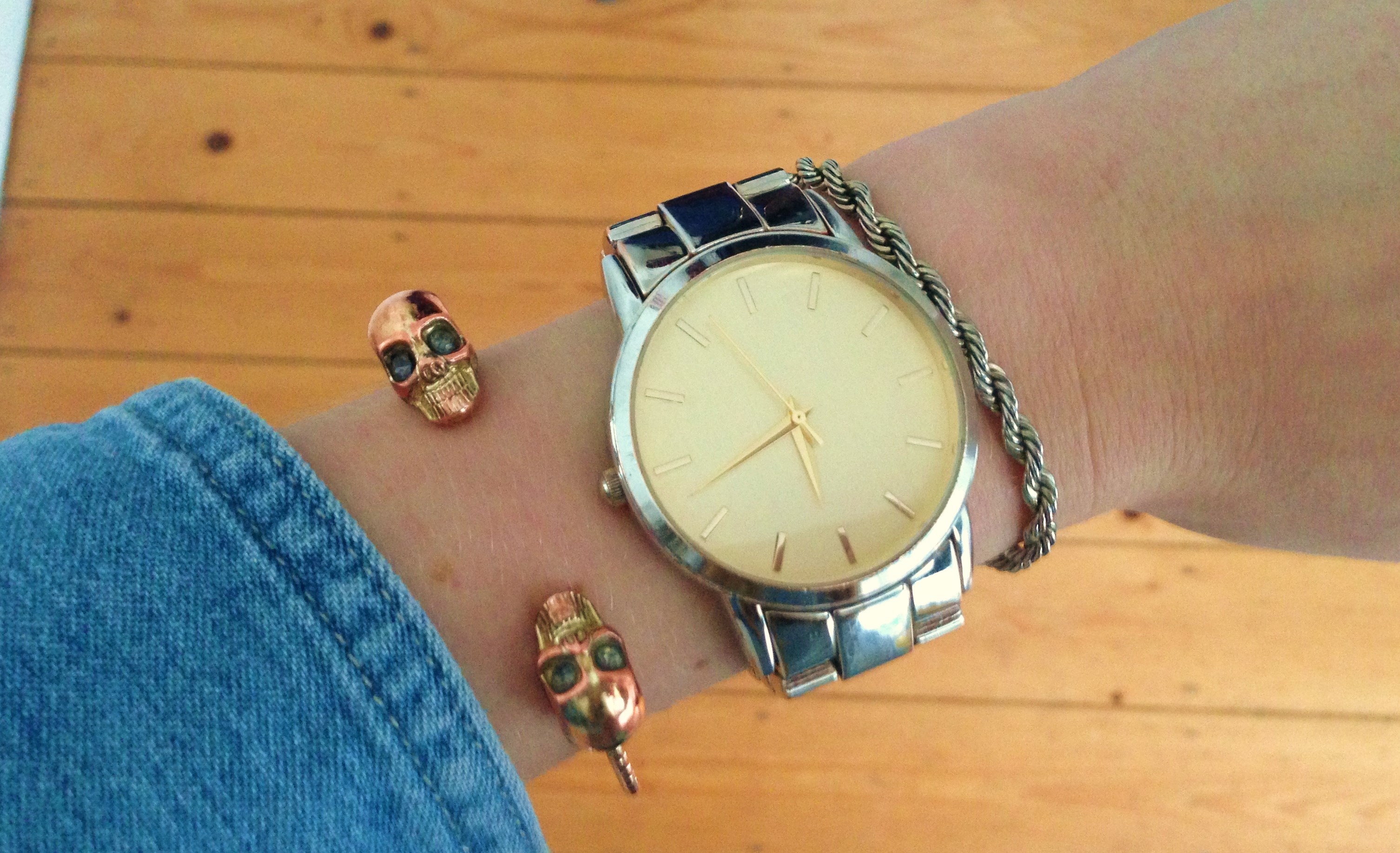 Some of today’s arm candy. The usual Asos watch and vintage bracelet and then this Alexander McQueen knock off from River Island. Keeping it simple and tying it in with the necklace.