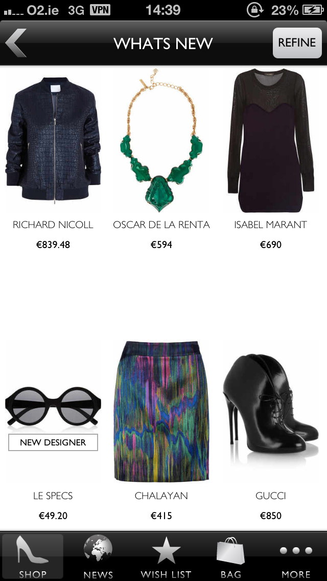 Lyst I have mentioned before. Like The Hunt, it is not necessarily a retailer, however it does link you to sites where you can purchase the garment. The Lyst is the ultimate wishlist. The clothes I would buy if I suddenly won the Lotto! Its a beautifully designed app. There is a website too but for some reason I only ever use the app.
