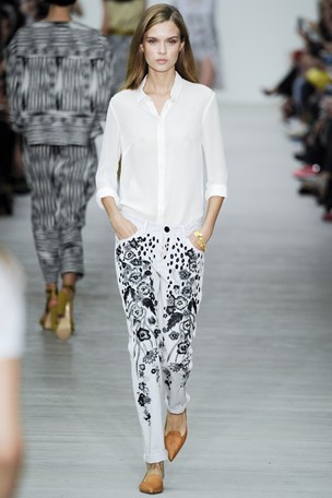 With the Spring Summer collections always comes the obvious florals. Even Christoper Kane commented that ‘Florals are done to death…’ Personally, its never been a look that I can pull off. Being short means excessive prints look ridiculous on me so its something I tend to steer clear of. However, I do like some of the looks that came through this season. Matthew Williamson did a lovely look using different sized floral prints in muted tones that’s very wearable, look number five. Many florals will become more wearable in the coming seasons.