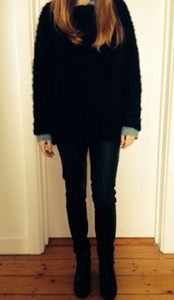 The shirt I’ve shown you guys before, borrowed from the Amy Closet (my sister). It helps to break up the leather trousers and the jumper as well as providing an extra layer. The leather pants you’ve also seen before, a River Island favourite. I turned them up a little at the ends so they weren’t stuffed into the boots. Apologies for being decapitated in the photos by the way. You know the way most people have bad hair days? Well I have bad face days. Its when my make up doesn’t work and I’m even worse at taking photos. Hence, Headless KB.