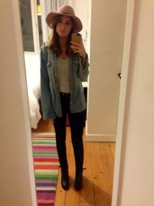 Today I have my trusty black J Brands with my Topshop boots, both of which I live in. But true to my Style Resolutions, I’m not wearing what I normally would have, which is basically all black. Instead I have on my grey Cos tee and a light denim shirt and my lovely new beige Topshop hat. In terms of basic tees, you really can’t go wrong with Cos. Lightweight, lovely cotton, slouchy and they come in a load of colours. I advise stocking up, I wear them all year round.
