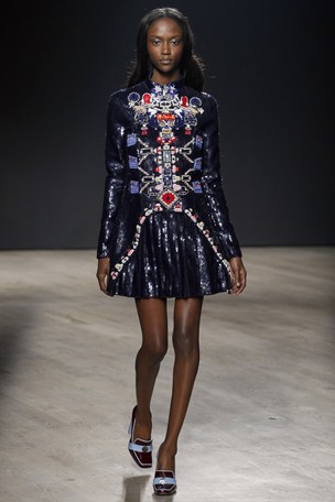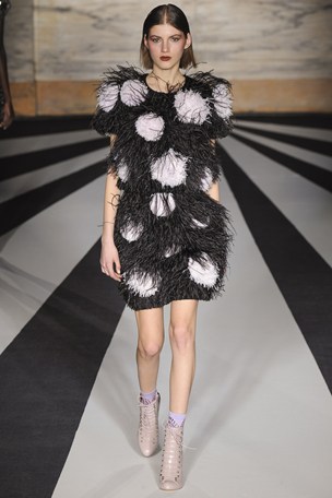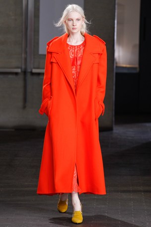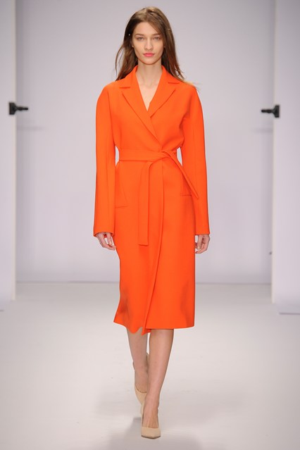 In a complete 180 from blues, red and orange made an appearance at LFW. These warmer tones will make great transitional pieces from summer to winter, especially that fantastic orange seen on the coats at the Preen show. Such a show stopping colour!