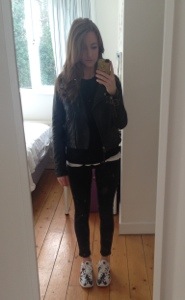 I kept my outfit nice and simple, lots of black as usual. I have my most battered, but one of my most loved bags with me today. I got it in Urban Outfitters about 4 years ago and it has been dragged along everywhere with me, normally stuffed full with half my wardrobe.