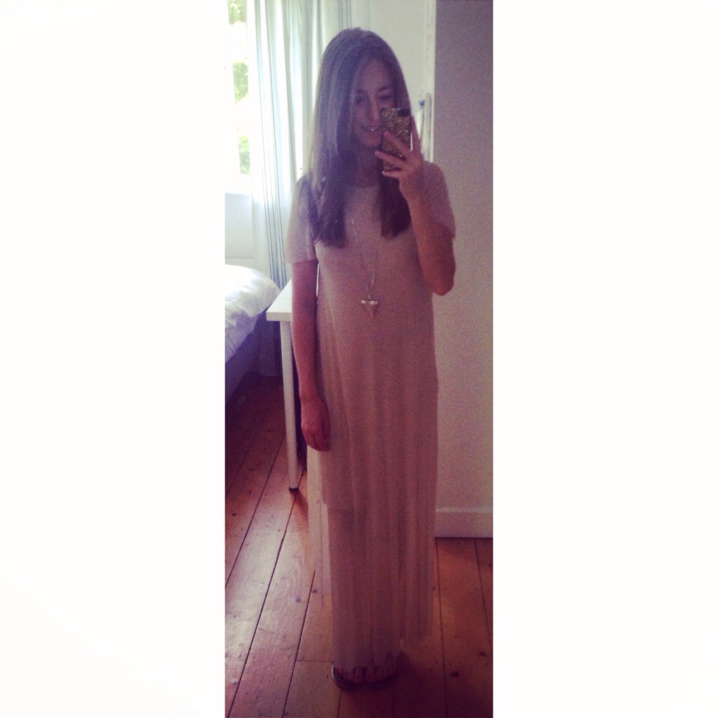 It was one of my friends birthdays last Saturday and she was having a BBQ. Having been out the night before, I wasn’t feeling the greatest and wanted something really easy to wear. I mentioned in my previous birthday post that I would show you the COS dress my parents got me for my birthday and here it is. Apologies for the awful quality photo. The dress is light pink-beige and has a mid length cotton dress underneath semi sheer, longer fabric. I wore it with my new necklace, also a birthday gift, made by From Bud To Rose. It was so easy to wear and perfect for a summer BBQ.