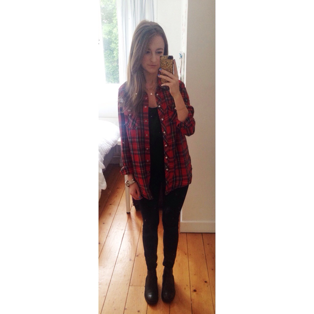 Friday was a manic day for me. There was so much I had to do in work and it was non stop all day. Bearing that in mind, I threw on a super simple outfit that morning. A black cami and black jeans, which are pretty much my staples, and a red plaid shirt over it brighten it all up. I was so tired when I finally got home last night and was very glad that I hadn’t wore heels with all the running around I had to do!
