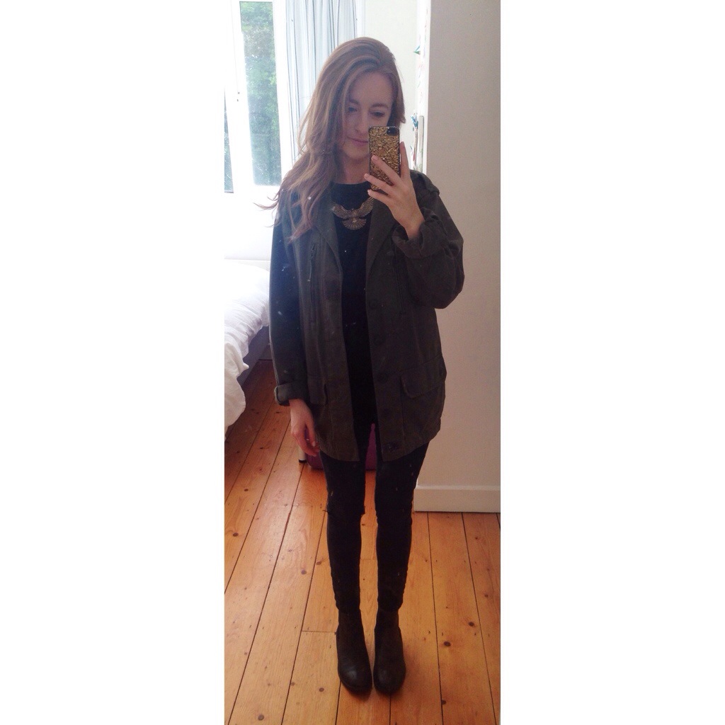 Tuesday I was feeling the military vibe. The outfit looked a little dull and lacking, but I found that adding the eagle necklace added that extra detail that was needed. I’ve had this jacket forever. So easy to wear and goes with so much. I consider it to be an essential like a denim jacket, a black blazer and a leather jacket.