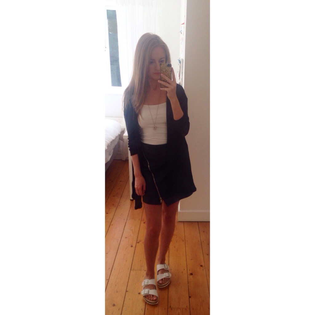 Yesterday I wore the Birks again but the sun was out so I decided to wear a skirt in the hope that my legs would see some sun. I don’t know how I thought that would happen working in an office…. but there’s always lunch time! I left a little like Cher from Clueless in this outfit. I’m not quite sure why, but it’s definitely a vibe I am more than happy to channel.