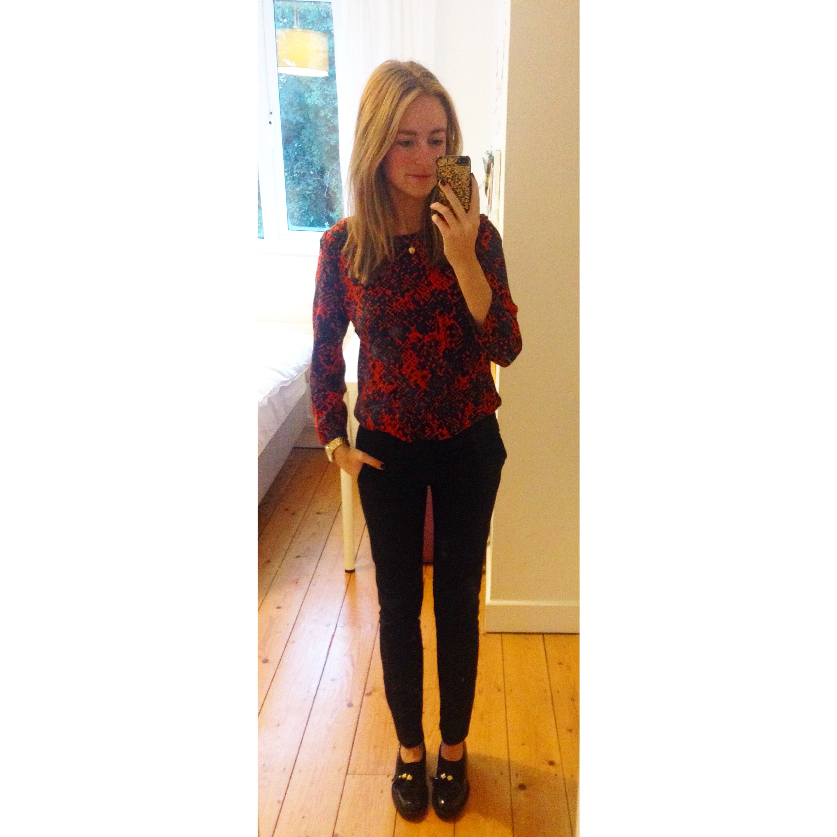 More Sandro pieces today! This top is one of my favourite Sandro pieces because of the awesome cut out detail in the back. I would have never thought orange and blue would go so well together, but it just works. Simple black trousers and black brogues completed this easy look.