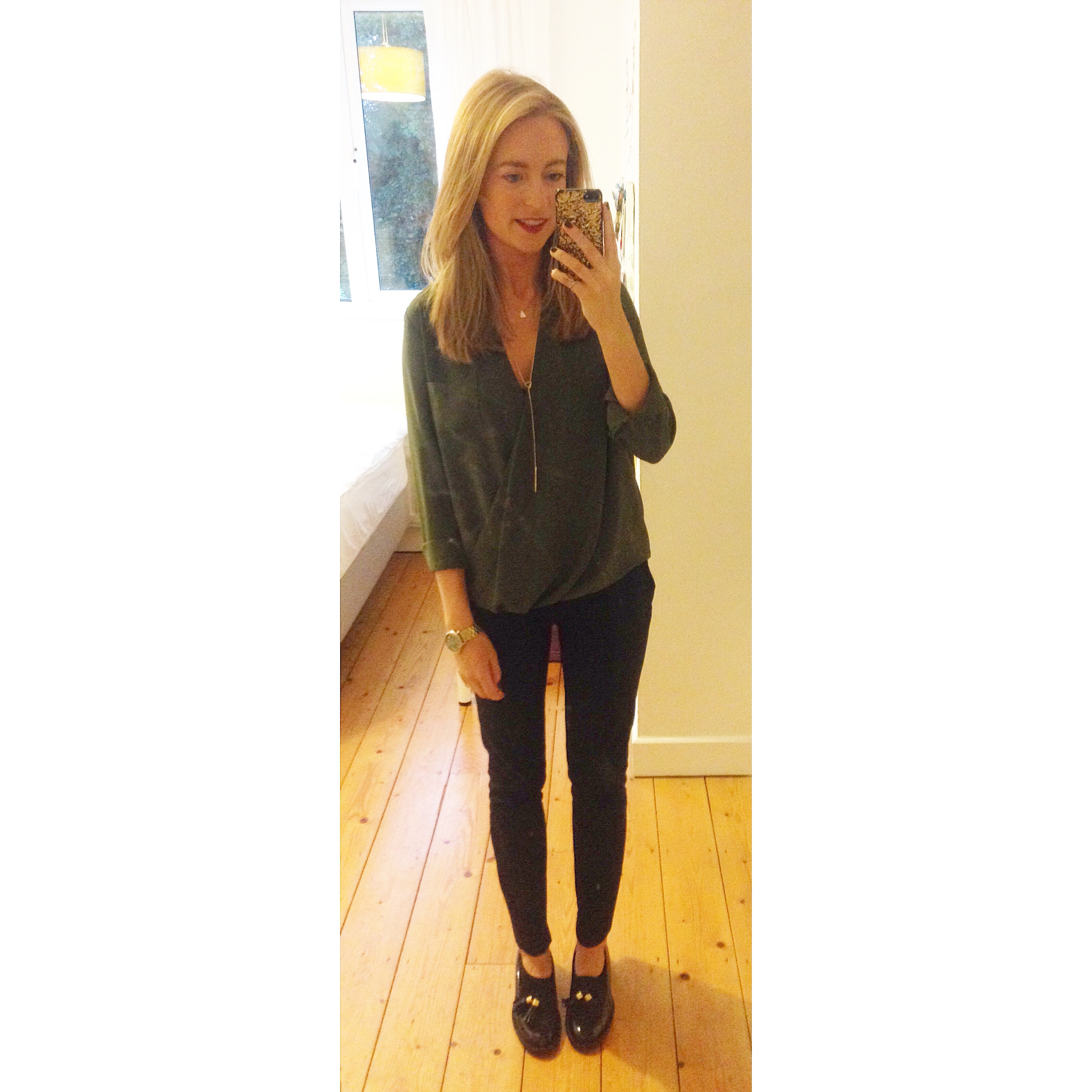 I didn’t end up dressing up on Halloween, which seems silly after all my Halloween costume posts! But being in work all day and having a work party straight after work meant there was no time to go home and change, and I didn’t want to be lugging around a big bag of clothes all night. During the day in work I wore this moss green blouse with work trousers. Later that night I changed into deep brown leather trousers and heels. If anyone asked – I was dressed as a tree!