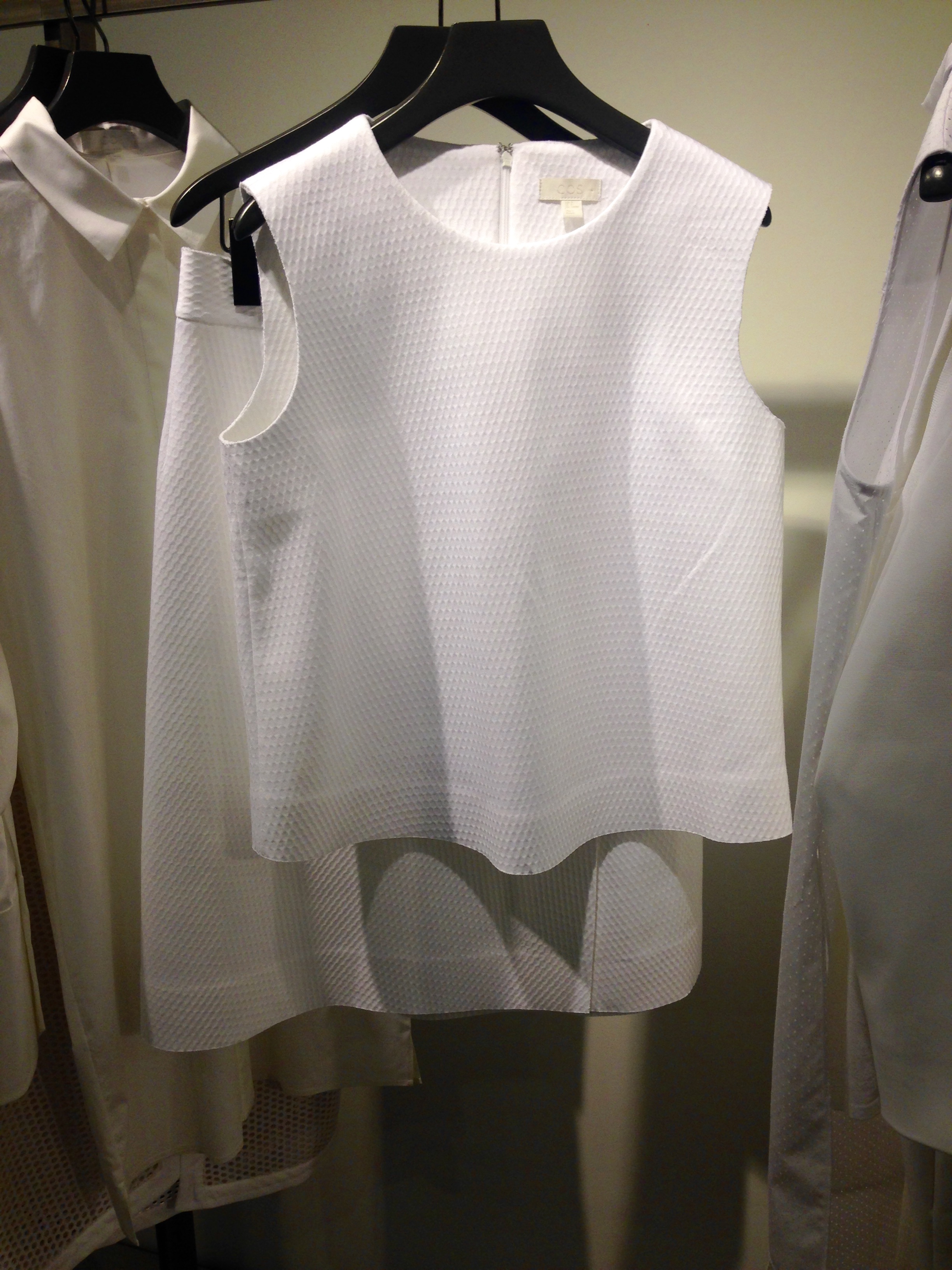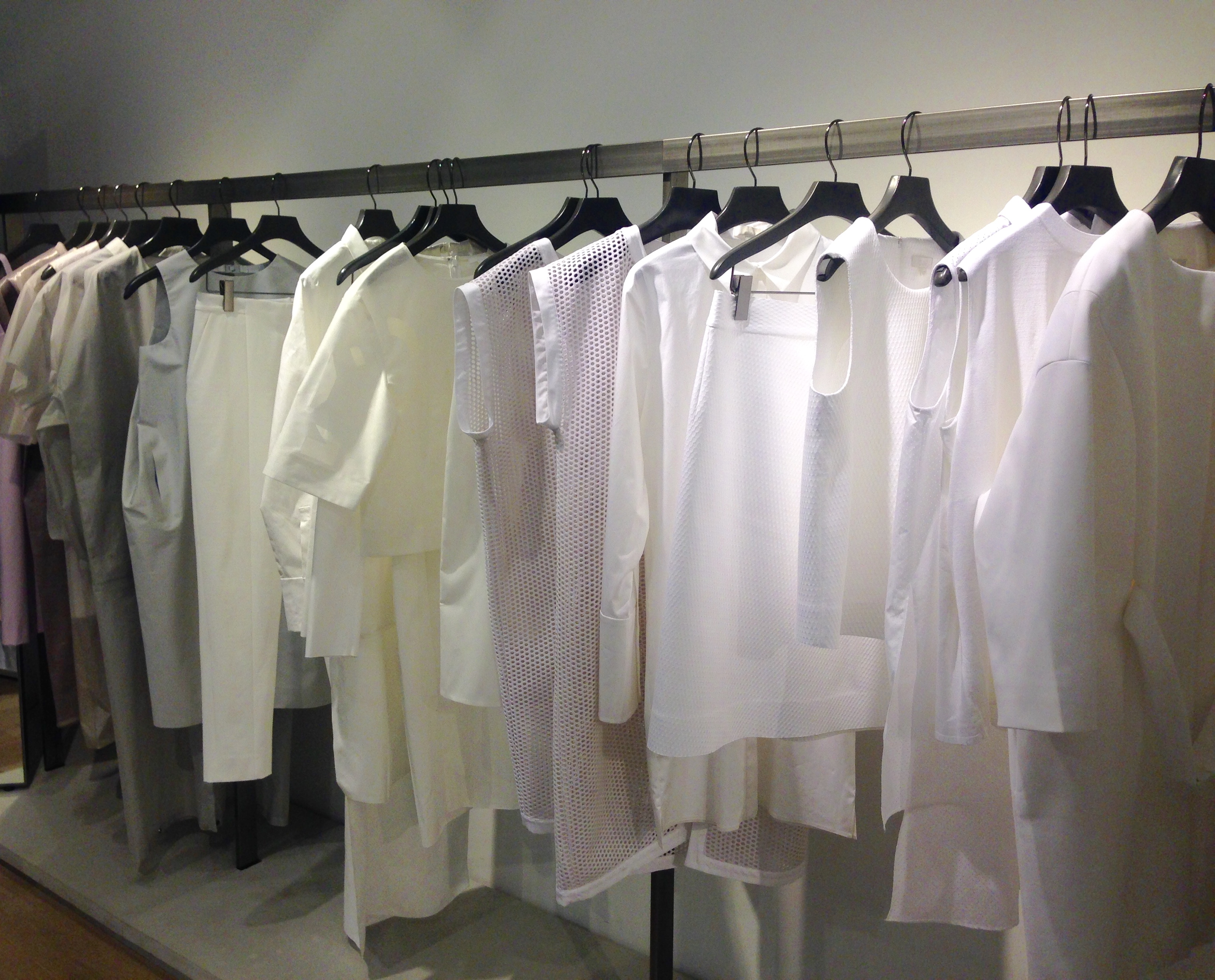 Another source of inspiration for the COS collection was a laboratory. This can clearly be seen below in the clean white lines of the clothes. Lots of the pieces can be transformed, poppers to make a hemline longer for example, and many of the pieces have an unexpected element. I love the use of open backs, keyholes in unexpected places, blue pocket lining in an all white dress. It’s these details that make COS so exciting!