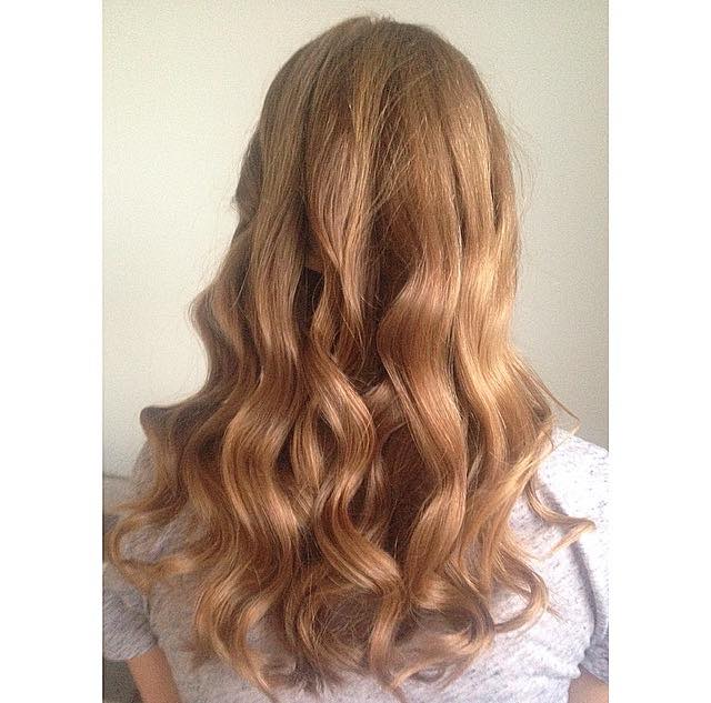 4. Continue around your head always curling away from your face. Once you finish, leave the curls to cool completely before you even think of touching them. This means that the curl sets. If you were to brush your curls when they are still warm, it wouldn’t hold as well. How gorgeous is this half curled, half straight look?! Definitely going to start a new trend… Kidding! This was one of those ridiculous photos I was talking about!