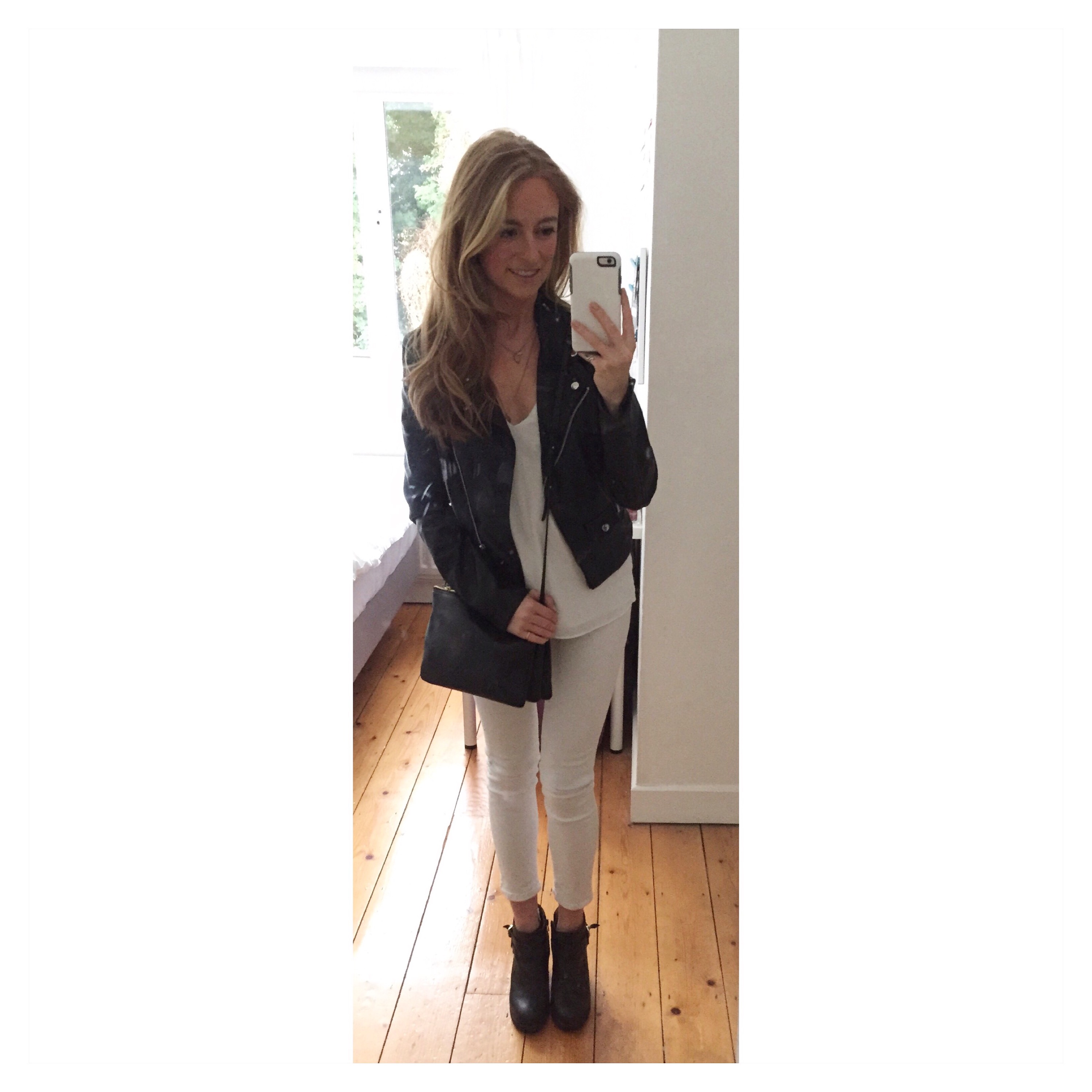 Last weekend, two of my lovely friends were home from Toronto, one permanently which I couldn’t be happier about, and one for a short trip. I recently visited them in Toronto, but it was still amazing to see them again so soon! I kept my look pretty simple that night – white jeans and cami with a black leather jacket, boots and my Celine, aka CiCi – my child.