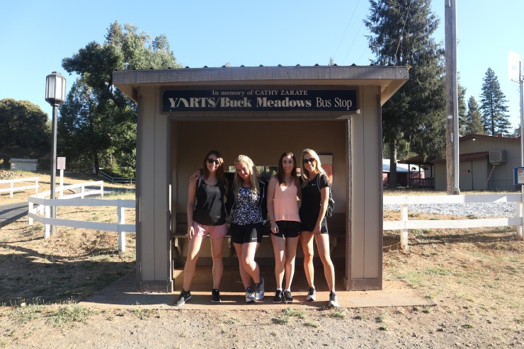 Here’s where the now-that-I-have-some-distance-from-the-situation-it’s-hilarious story begins. There is a bus that goes around the Yosemite Valley, essentially enabling you to get to the trails easily. After all the driving the day before, we were all feeling allergic to the car, and too tired to drive, so the bus was the best solution. There was a stop outside our lodge and one outside Rush Creek, about a twenty minute drive away. We hopped on the bus at 8:30 to Rush Creek for breakfast, and planned to get the 10:30 bus from Rush Creek to the trails, a forty minute drive from Rush Creek.